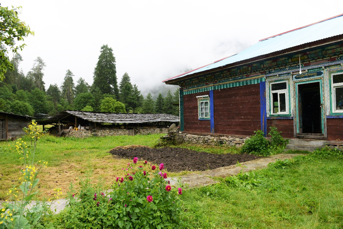 Greenery and flowers surround the garden of a family hotel in Baka village, Bomi county, Nyingchi city in Southwest China's Tibet autonomous region, on June 29, 2021. [Photo by Zhao Shiyue/chinadaily.com.cn]