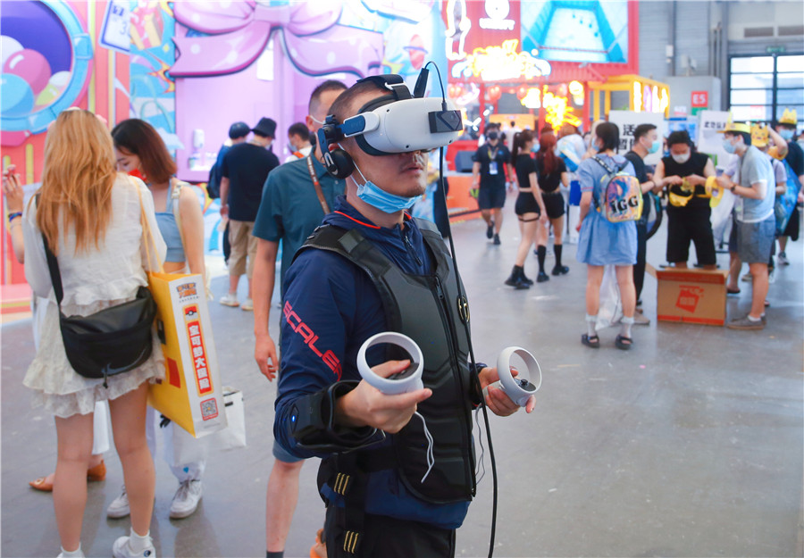 A visitor experiences VR technology at the China Digital Entertainment Expo & Conference, or ChinaJoy, in Shanghai on July 30, 2021. [Photo/IC]
