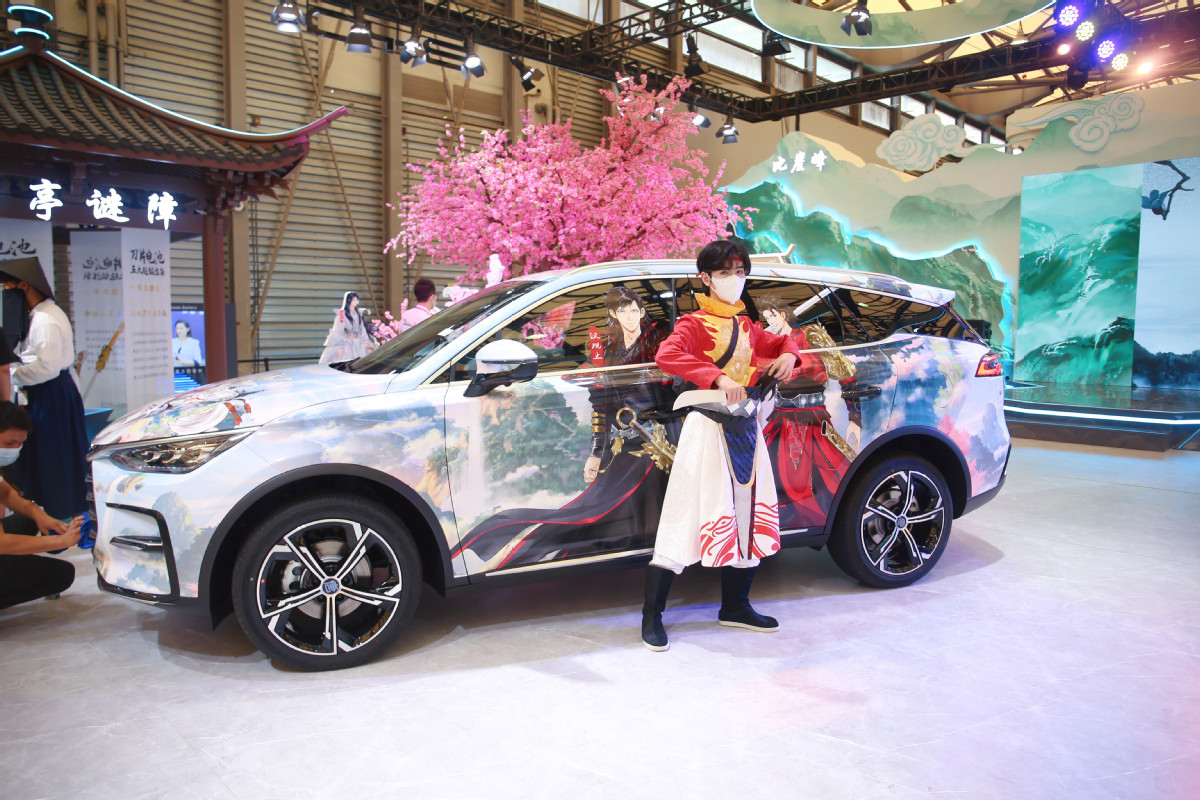 Chinese carmaker BYD showcases a new Chinese-style model at China Joy on Aug 4, 2021. [Photo/IC]