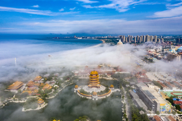 Yantai, a coastal city in East China's Shandong province, was blanketed by a thick layer of advection fog on July 22, turning the port city into a dreamlike fairyland.