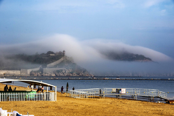 Yantai is gradually blanketed by a thick layer of fog on July 22, transforming the coastal city into a dreamy wonderland. [Photo/WeChat Account: yantaifabu]