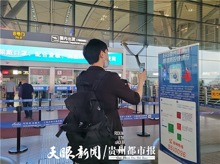A passenger scans his QR health code to pass through customs at Guiyang Longdongbao International Airport. [Photo/ddcpc website]