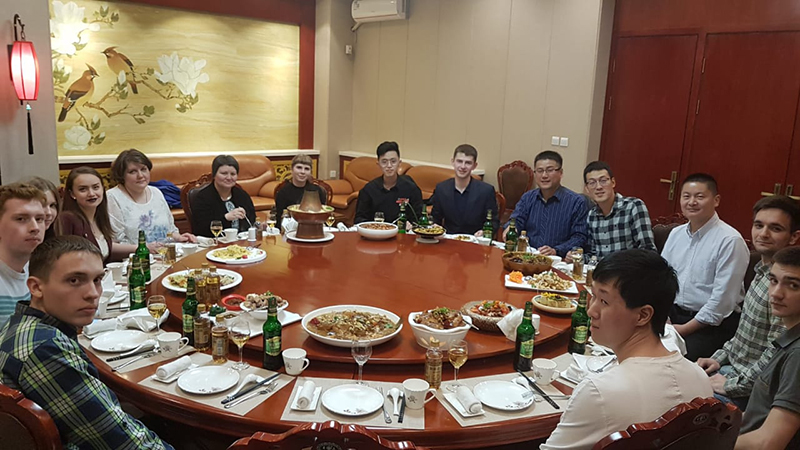 About food. When we arrived in Harbin, we were shown a canteen for students. Russian and Chinese food is different, in Russia they add less spices and pepper, but we were able to find dishes to taste. Sometimes we went to the night markets on one of the streets of Harbin. There was delicious street food, various sausages, vegetables and desserts on sticks. On the last night of our internship, Chinese students took us to one of the restaurants, where they offered to choose the dishes themselves. Russian crazy students decided to try dangers food (some maggots on the grill)! Even the Chinese refused to eat it. I ate one larva, which tasted like a squirrel. It was interesting to try this, but I did not eat these larvae anymore. When we gathered together with Chinese students and teachers at the same table, we sang old Soviet songs (the most popular "Katyusha"). The Chinese sang in their own language, the Russians in their own language. There was a sense of great friendship and cohesion!