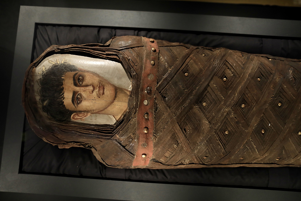 A male portrait mummy is on display at the China Millennium Monument in Beijing. [Photo/IC]