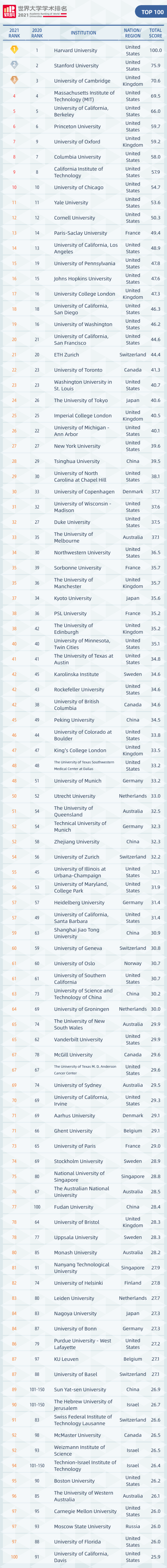 The 2021 Academic Ranking of World Universities was released on Aug 15 by Shanghai Ranking Consultancy, publishing a list of the top 1,000 universities in the world.