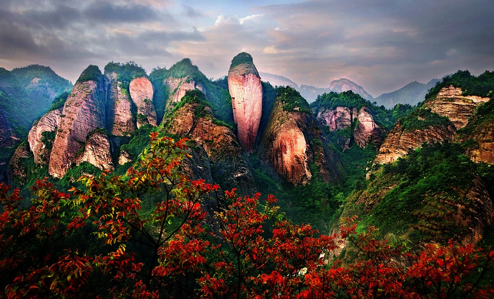 Breathtaking danxia landscapes in Langshan Mountains Scenic Spot