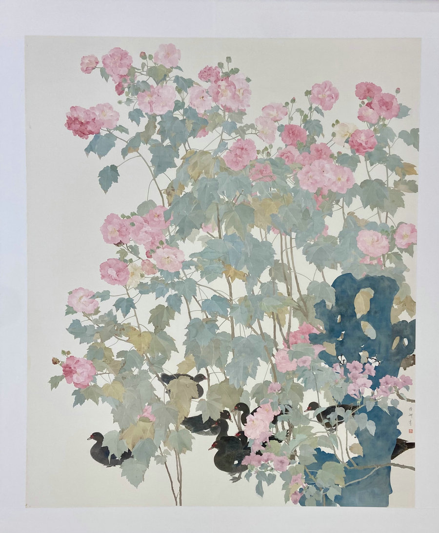 On show are oil paintings and Chinese ink-water paintings encompassing the three classical genres: landscapes, flowers and birds, and figures.