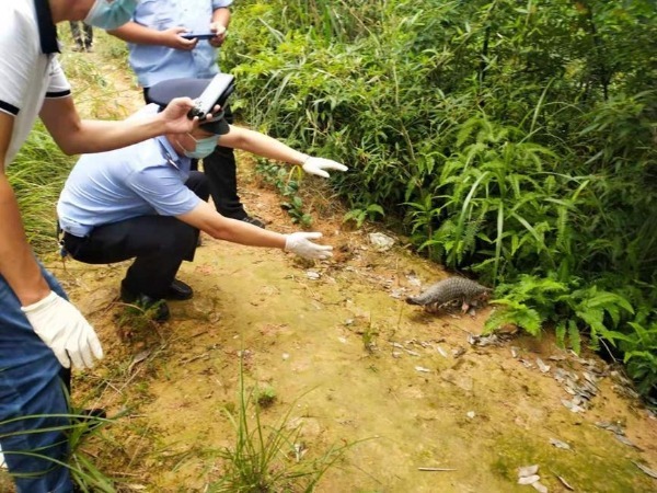A male pangolin found in Taimushan town of Fuding, a county-level city in Fujian province, was released in good physical condition. [Photo provided to chinadaily.com.cn]