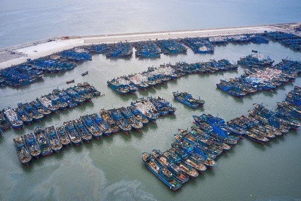Ships at harbors in Shishi city, Quanzhou, East China's Fujian province are ready to set sail, as the three-month fishing moratorium ended on Aug 16. It is a spectacular scene as hundreds of fishing boats line up on the vast blue sea. [Photo/VCG]
