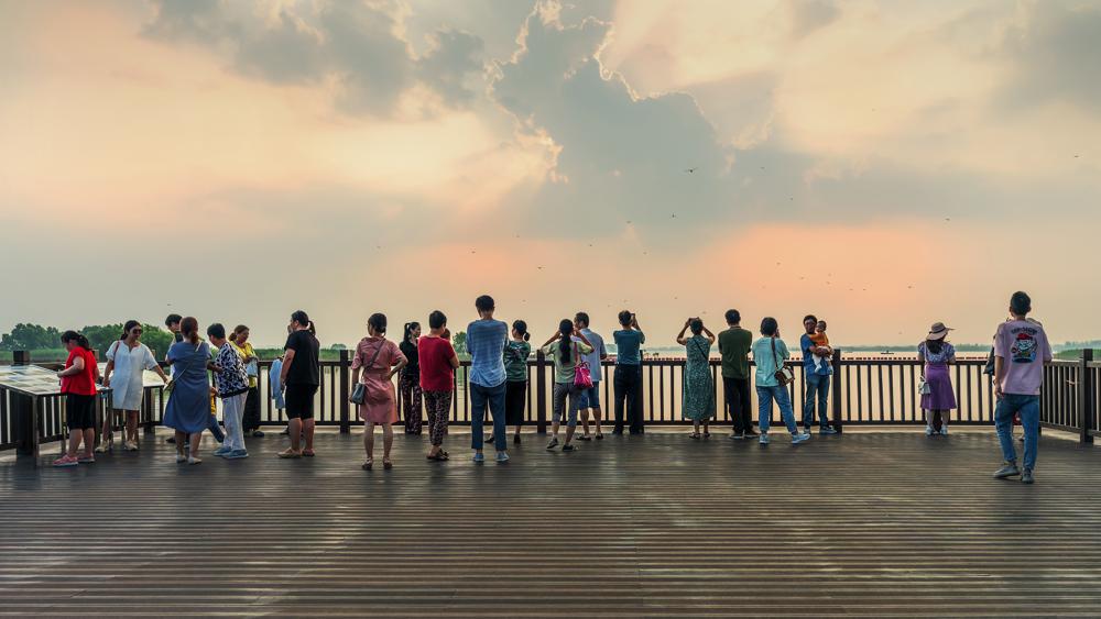 Visitors to Xuejiawa ecological park appreciate the scenery on a viewing platform. [Photo provided to chinadaily.com.cn]