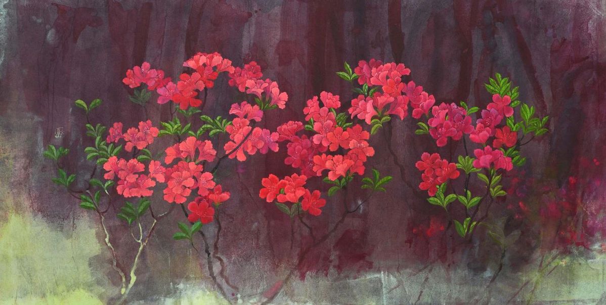 Flowers are a constant inspiration for painters: consider Monet, Van Gogh, and Georgia O'Keeffe. Let's take a look at the very personal interpretation of flowers and plants by contemporary Chinese painter Ding Rong. His solo exhibition is now on at the Jiangxi Provincial Art Museum.