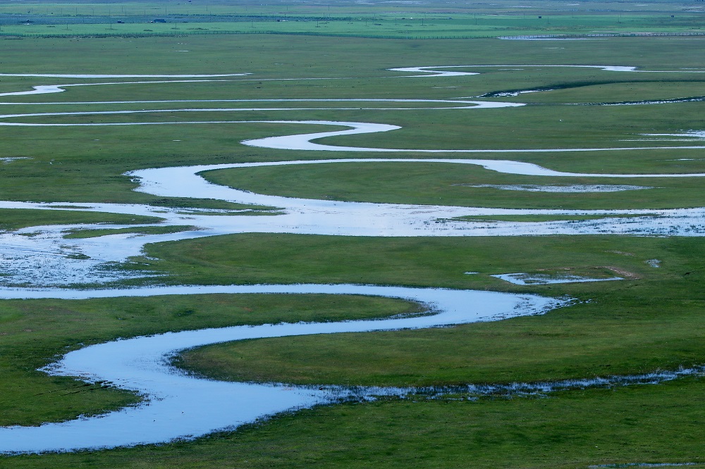 Winding river draws ecological painted scroll across grasslands