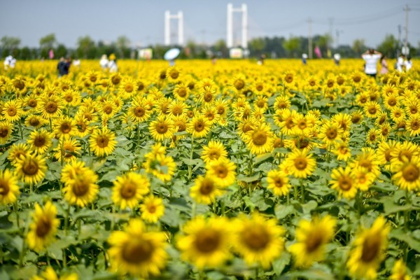 More than 60,000 sunflowers are blooming in the fields in Qilipu village of Huaiyin district in Jinan, Shandong province. Currently, those sunflowers are in their full blossoming period, and will stay in that phase until mid- to late August. By planting the sunflowers, the village hopes not only to attract visitors, but also enhance the village's popularity into a rural leisure tourism destination.