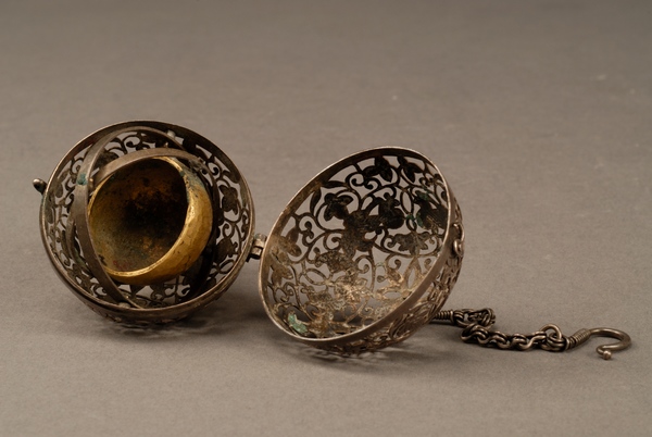 Hoarded silver openwork scent diffuser makes use of gravitational pull