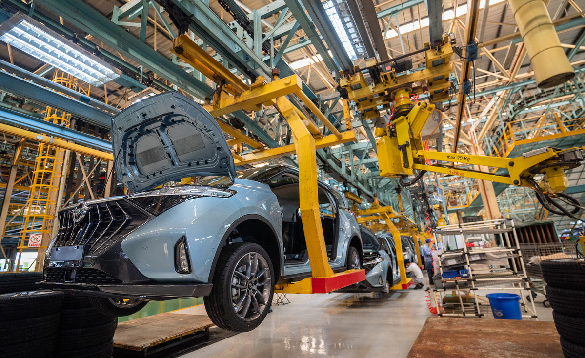 Workers assemble cars at a factory of Haima Automobile in Haikou, South China's Hainan province, on Aug 23, 2021. [Photo/IC]