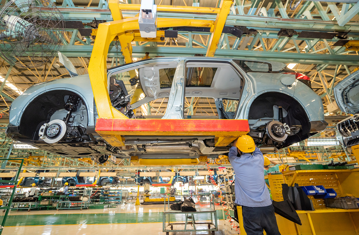A worker assemble cars at a factory of Haima Automobile in Haikou, South China's Hainan province, on Aug 23, 2021. [Photo/IC]