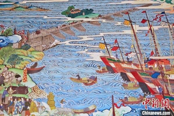 The thangka painting shows the prosperity of Citong Port in Quanzhou. [Photo by Li Ying/chinanews.com]