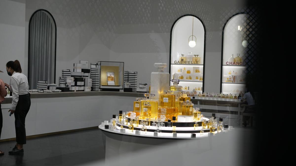 The first perfume exhibition by Chane opened at the Shanghai West Bund Art Center on Aug 23, 2021. [Photo by He Qi/China Daily]