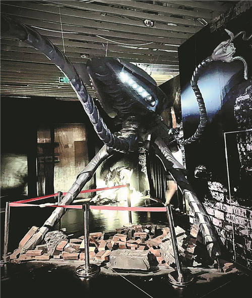 Looking out of a giant window and smaller side one reveals realistic scenes of the aliens' three-legged war vehicles attacking a farm, replete with explosions and fires.