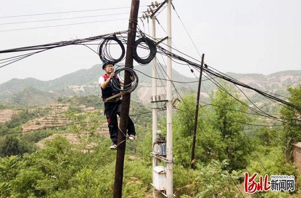 A mobile engineering construction worker installs optical broadband in Xingtai, North China's Hebei province. [Photo/Hebei news network]