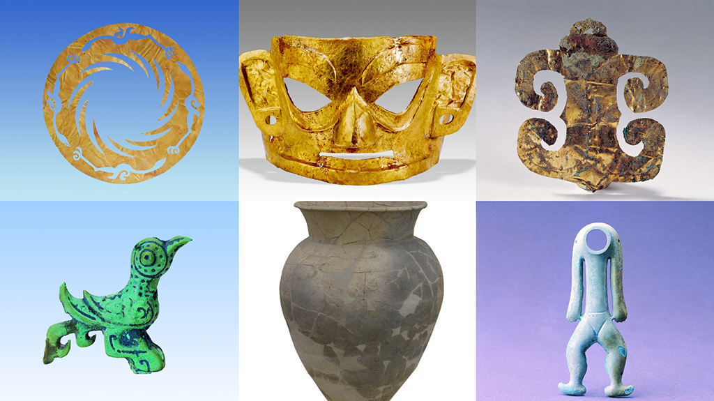 These images of the six cultural relics from the collection of the Jinsha Site Museum are sources for the design of the moon cakes. [Photo/IC]
