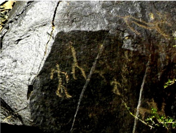 On an eave-shaped boulder in the western section of Langshan Mountain, in Dengkou county, Bayannuur, a riding team charges toward the viewer through time.