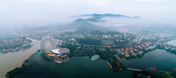An aerial view of the Taihu Lake scenic area in Huzhou, Zhejiang province. CHINA DAILY