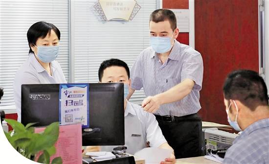 Wen Binzhi (second from right) guides colleagues in improving system security. [Photo/zjol.com.cn]