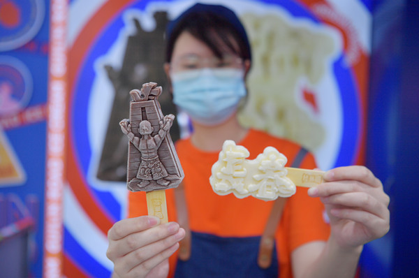 A shop assistant displays ice cream that highlights the city of Changchun – in Northeast China's Jilin province – Aug 26. There are two types of this ice cream and its quirky design features the famous landmarks and urban elements of Changchun – including the first FAW Jiefang car, the Changchun Film Studio and Changchun Railway Station. [Photo/IC]