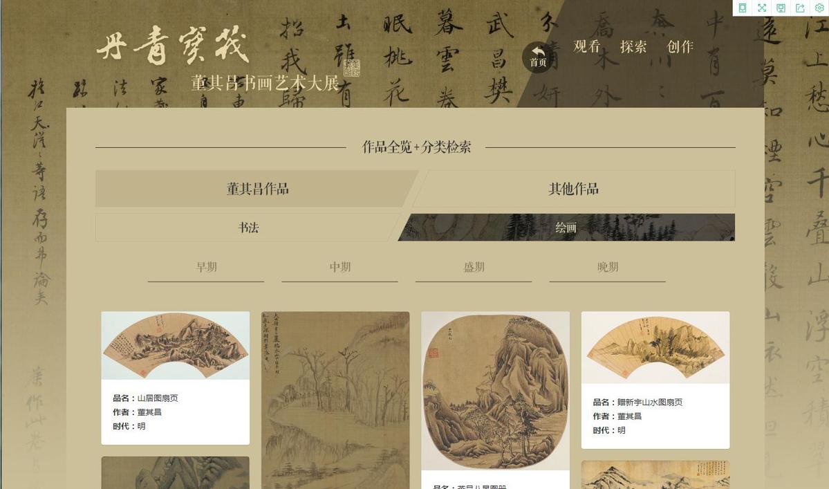 In the online exhibition, you will find a functional menu that includes “Viewing”, “Exploration” and “Creation” options. The “Viewing” section presents the calligraphy and paintings of Dong Qichang and works by other artists that had influenced him, including Wang Xizhi (303-361), Su Shi (1037-1101), and Yan Zhenqing (709-784) in the form of pictures and explanatory texts. In the “Exploration” section, Dong Qichang's life stories, journeys, and family and friends are narrated in detail by virtue of a variety of high-tech audio-visual illustrations.. For instance, in the “Journey” section, you can follow the river boat navigating its path along the screen map to experience Dong Qichang's three art tours. In the third option, that is, the “Creation” section, there are also technological features including DIY, VR, VF to immerse you in Dong Qichang's painting art. You can scan the QR code to play interactive games and learn to paint like Dong Qichang; or by entering the VR section you can “take the boat” to explore the inner world of the famous painting “Eight Scenes of Autumn”. Moreover, by choosing the VF option, you can see "moving" paintings, enter a world of landscape paintings and experience the strong artistic atmosphere.