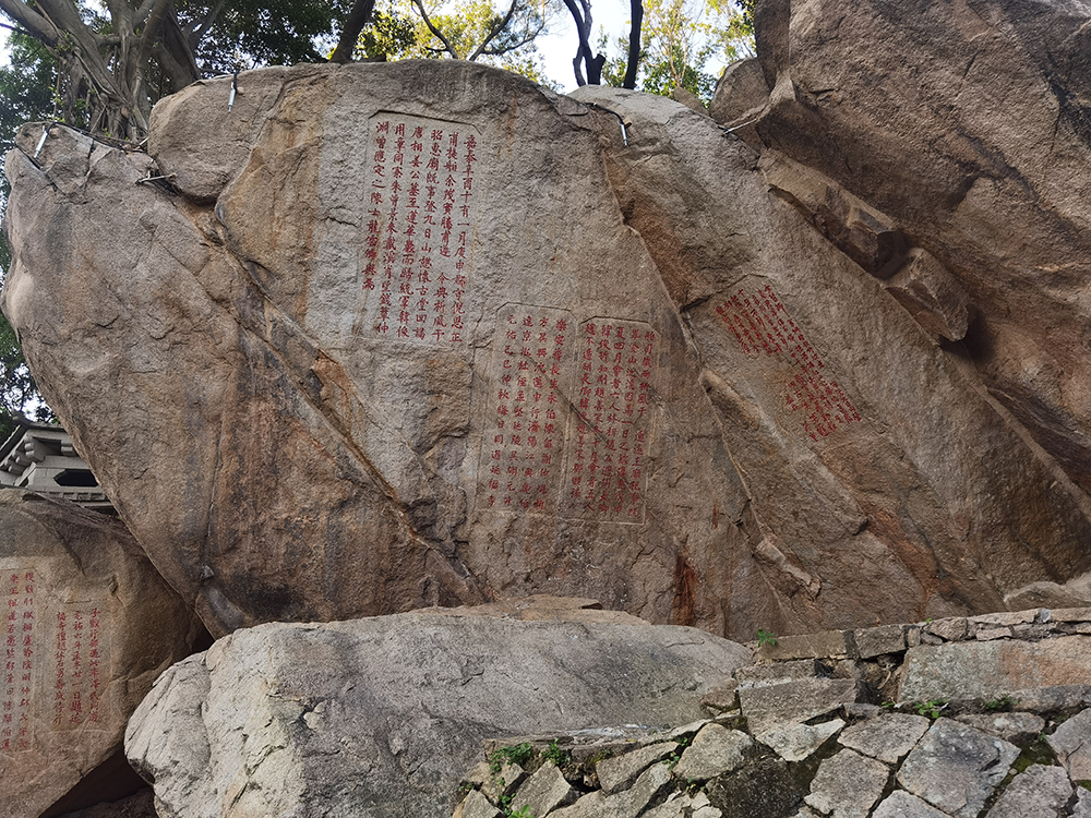 The Song Dynasty cliff inscriptions record the prayer rituals for the safe voyages of ocean-going merchant ships. The ceremonies were held by state commissioners, local officials and members of the imperial clan in charge of overseas trade in the Song Dynasty (960-1279). Their purpose was to pray for favorable winds to aid voyages.