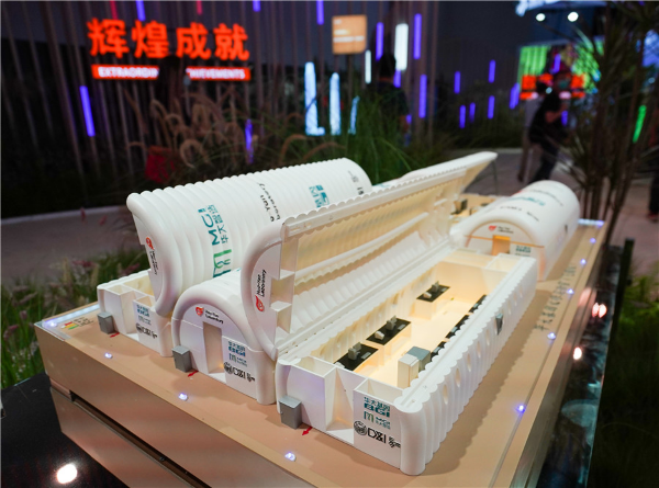 A model of BGI's Huo-Yan Laboratory (gas film version) is on display at the National Convention Center, one of the two venues for the 2021 China International Fair for Trade in Services, in Beijing on Aug 31, 2021. [Photo/Xinhua]