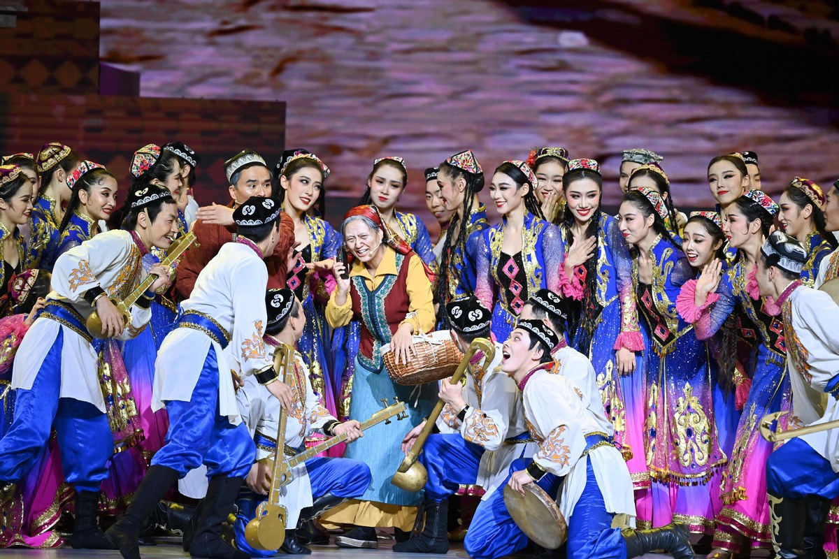 Performers greet the audience at the gala performance of the sixth ethnic minority art festival in Beijing on Tuesday evening. The gala featured songs and dances showcasing the distinctive cultures of different ethnic groups.[Photo/Xinhua]