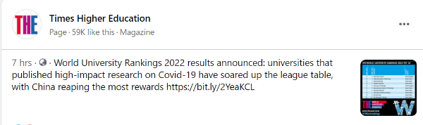 On Sept 2, The Times Higher Education announced World University Rankings 2022, which include more than 1,600 universities across 99 countries and territories.