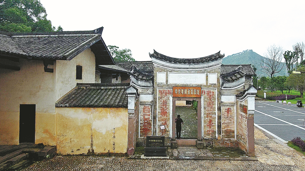 A tourist visits the relic of a Communist Party of China base-the Yuegan provincial committee of the CPC, a key site in the park, in May. SHADOW LI/CHINA DAILY