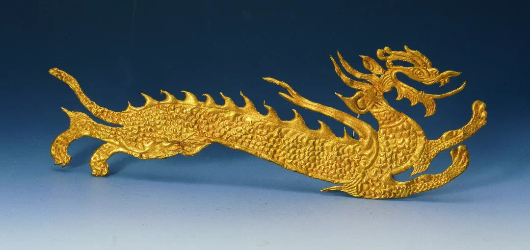 An embossed gold dragon discovered at the Linwu Cave Site in suburban Suzhou. This Taoist implement dates back to the Song Dynasty (960-1279). [Photo/WeChat account of the Suzhou Museum]