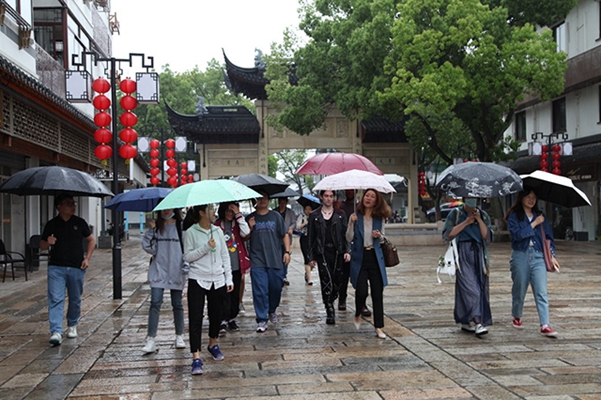 A student from Argentina said the visit to the Qingxi Old Street in Qingcun town gave her a new understanding of rural construction in Shanghai. The old street has retained its historic design while integrating modern art following the renovation and is now a scenic spot worth visiting.