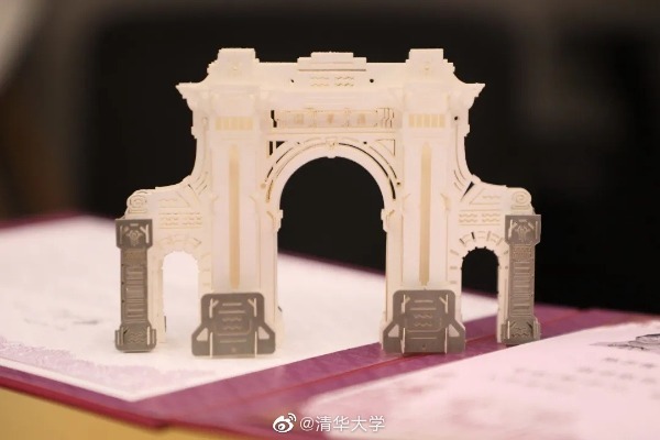 Tsinghua University updated its admission notice, with laser engraving and manual work applied in the three-dimensional school gate.
