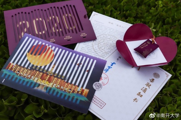 An eye-catching design of two lotus seeds are wrapped in the admission notice for Nankai University. It also includes, a letter written by the 90-year-old Li Zhengming, who is an academician from Academy of Engineering and the first graduate student of NKU since the founding of the PRC. Li encourages young students to make further contributions to building a strong nation in his letter.