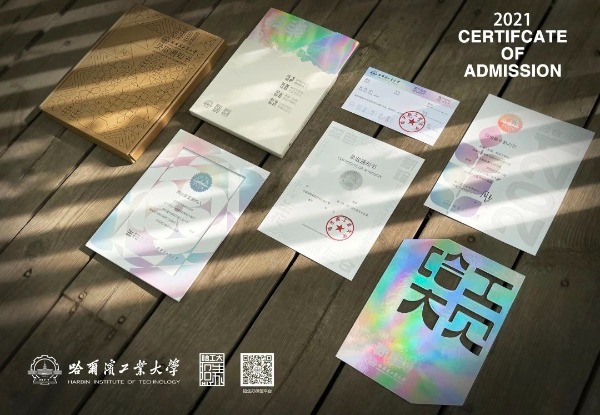 The admission notice of Harbin Institute of Technology is stunning, showcasing different colors from different angles when put under light — a metaphor symbolizing that each individual poses their own potential for greatness, if given a chance.