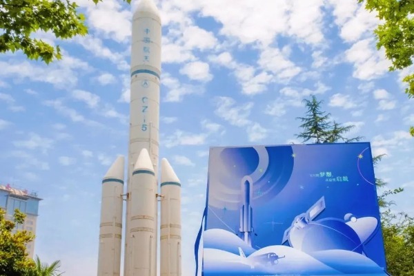 In the letter, there are three-dimensional laminated paper sculptures, including the Long March 5 rocket and a C919 passenger aircraft. Unfolding the sheet on which the notice is placed, one can view the blueprint of the aircraft.