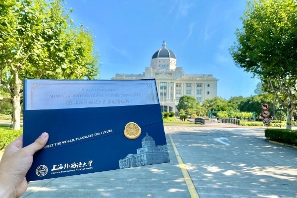 The admission package from Shanghai International Studies University takes the shape of an envelope, which signifies the opening up of a new chapter. The school's English motto, "Interpret the World, Translate the Future", has been printed on the cover to encourage students to help bridge China and the world.