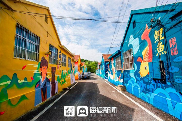 Various painting works are seen on the walls of Zhuliu village in Yantai, Shandong province. [Photo/dzwww.com]
