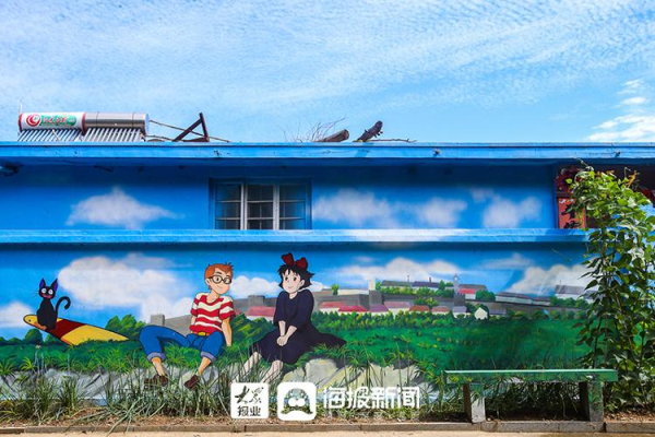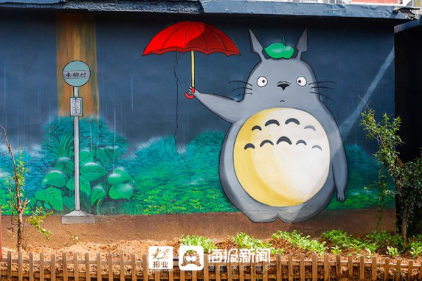 More than 8,000 square meters of walls in the village have been painted with themed classic animations such as Spirited Away, My Neighbor Totoro and cartoon images, creating a unique landscape in the village.