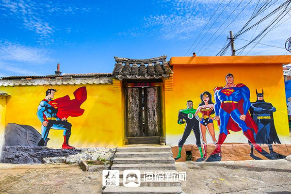 Characters of Marvel Comics are decorated on the wall of a house in Zhuliu village in Yantai, Shandong province. [Photo/dzwww.com]