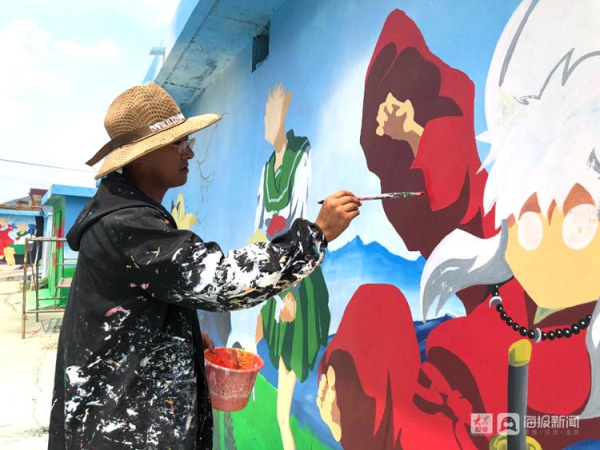 A cartoon-themed painted wall in Zhuliu village in Yantai, Shandong province [Photo/dzwww.com]