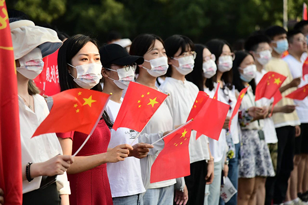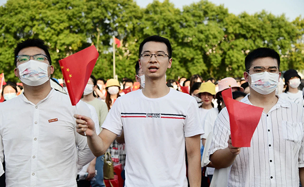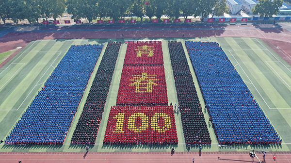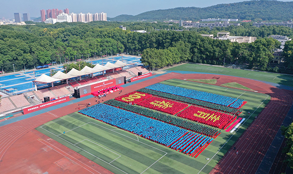 Welcome aboard, new HUSTers! On Sept 10, Huazhong University of Science and Technology held a ceremony for all of its freshmen. More than 7,000 new students wearing colorful T-shirts posed to form the words "Youth 100" before starting their new academic journeys. [Photos/HUST]