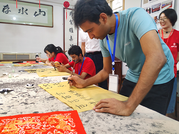 The calligraphy class was well received by the team. Ma Yi, an international student from Egypt, is a calligraphy enthusiast and his fluent brush writing is even better than his Chinese teammates. “I will introduce traditional Chinese culture to people around me because both Egypt and China are ancient civilizations and have a lot in common. I believe that people in Egypt will also have more understanding and love for Chinese culture, and I will tell everyone about the real China," he said. Other international students said they will actively contribute to cultural exchanges between their countries and China when they return home.