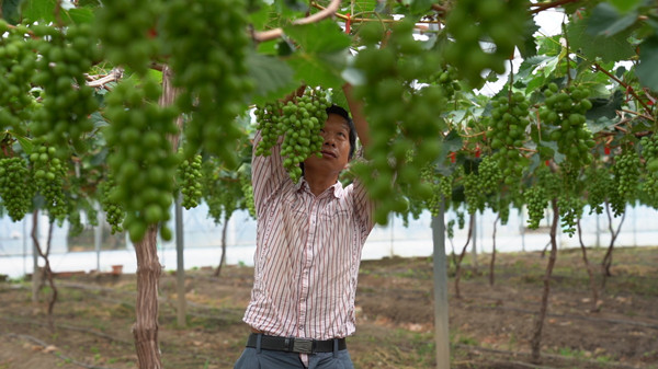 Li Hanlin works in a vineyard at a plantation that employs disabled people in Nantong, Jiangsu province, on June 14, 2020. Li has a mild mental disability. WANG JIA/CHINA DAILY