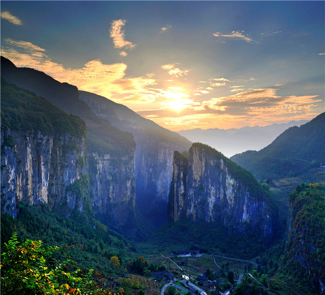 Sunset at Hankui Mountain Gate in Fengjie, Chongqing on Nov 2, 2018. [Photo/VCG]